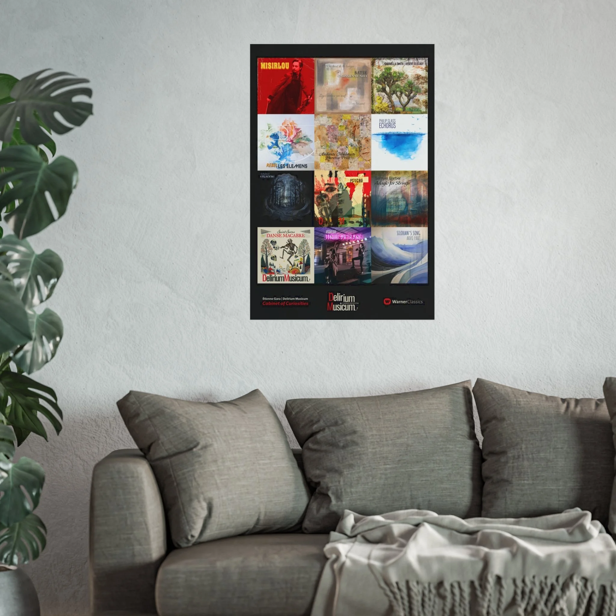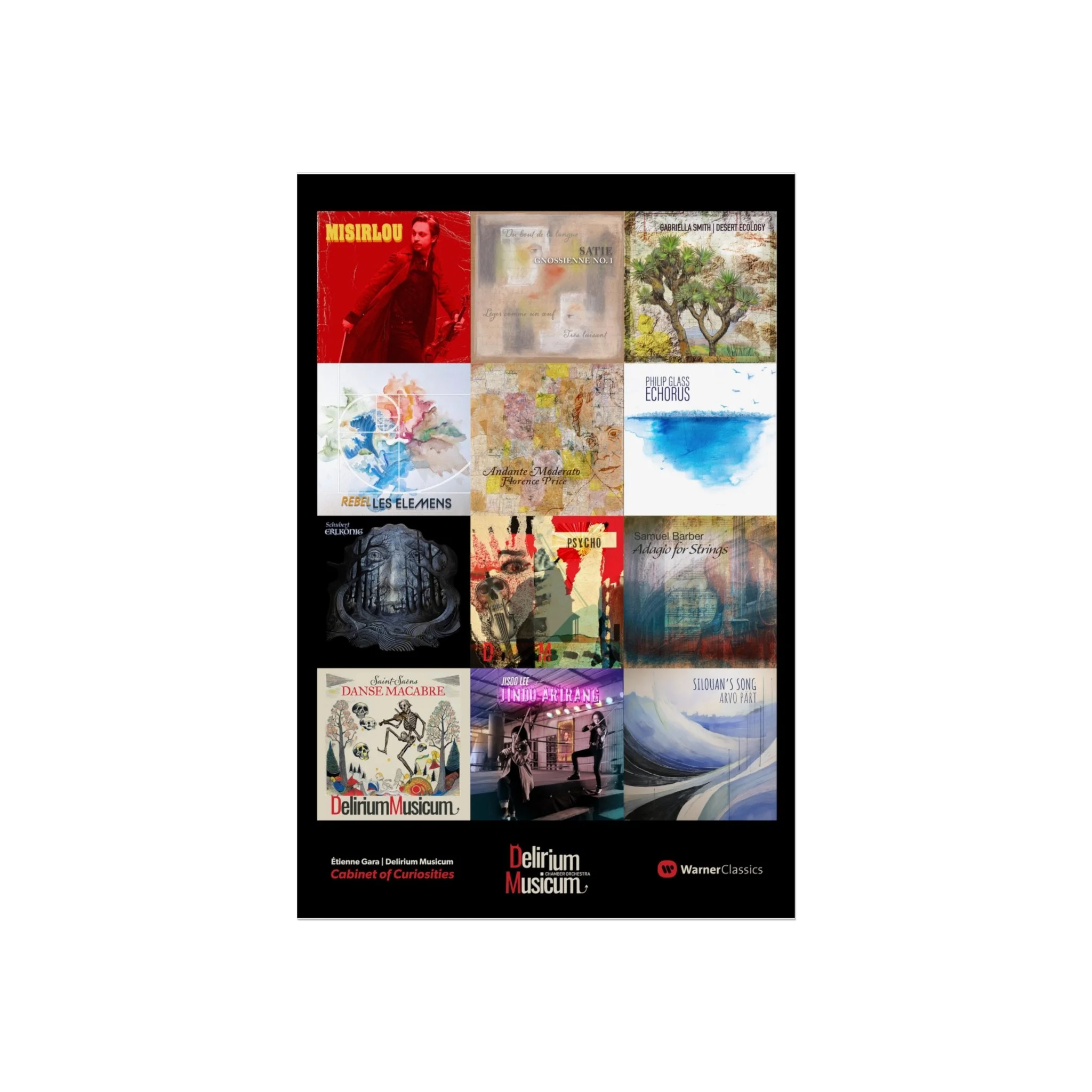 Find the artwork for each of the 12 pieces that form Delirium Musicum's album "Cabinet of Curiosities" for Warner Classics on this stunning poster!